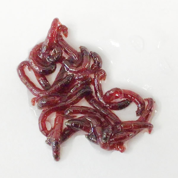 赤虫やさし虫は1匹でつけるか半分に切ってつけましょう。ミミズは大きいので2cm以下にカットして使いましょう。